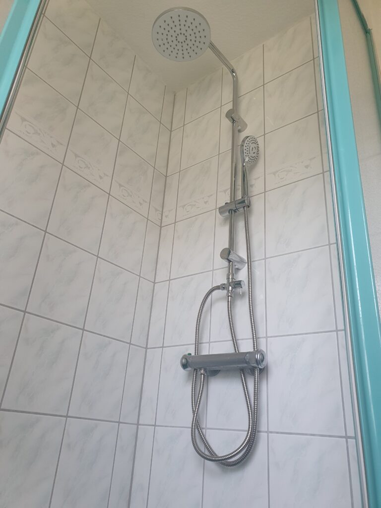 Die Dusche wird zuverlässig elektrisch beheizt und verfügt über eine vollautomatische Temperaturregelung.