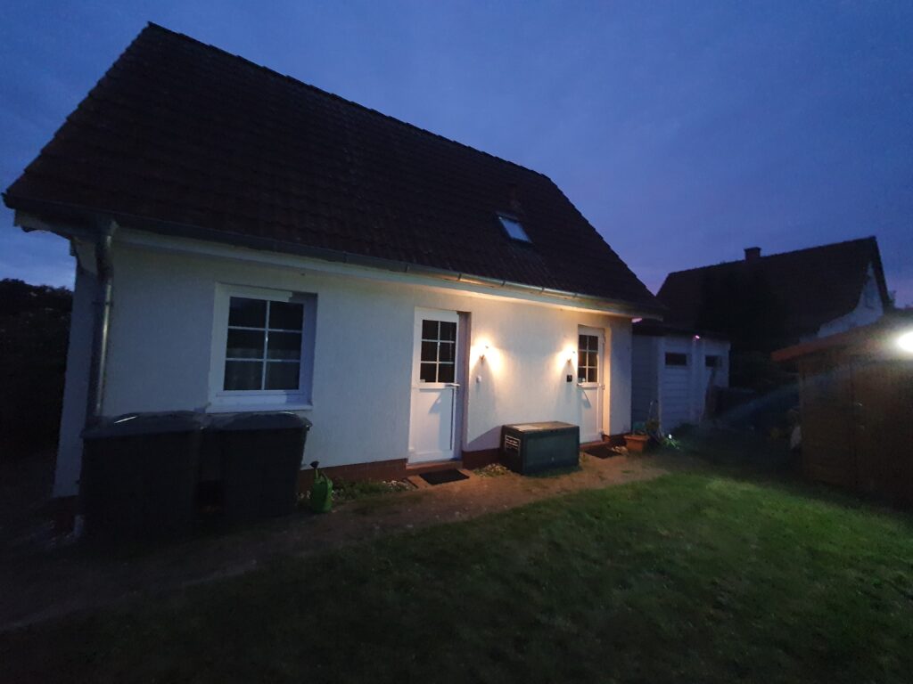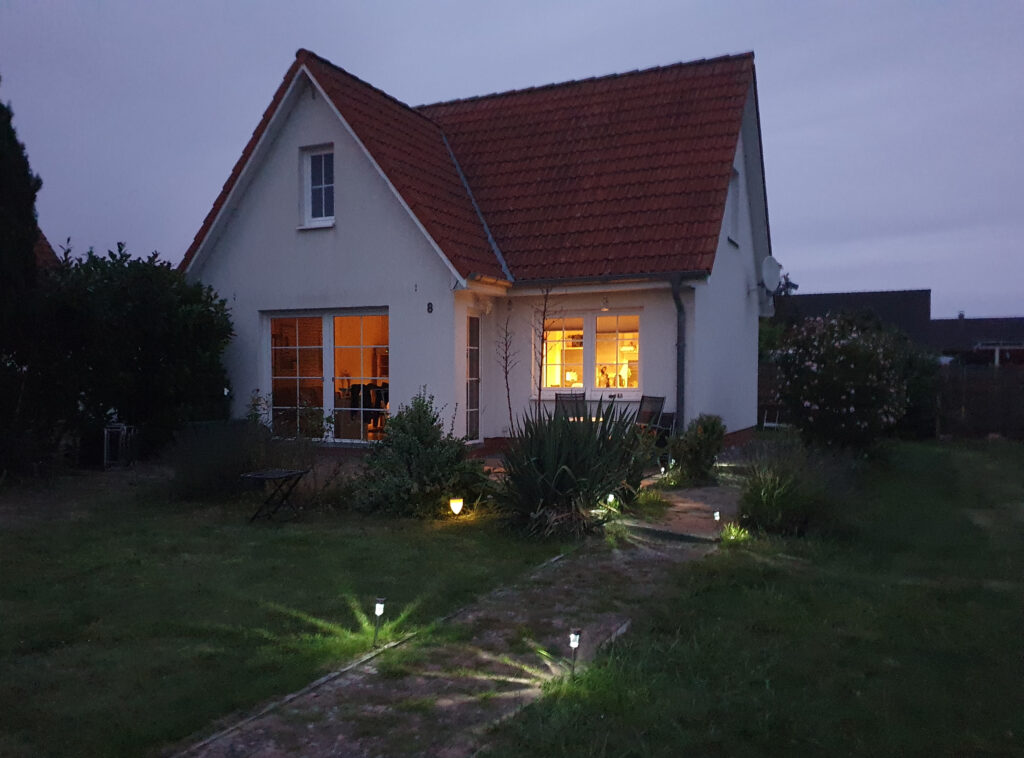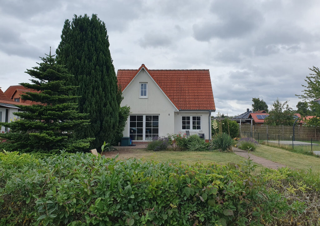 Das Ferienhaus steht im hinteren Drittel des Grundstücks. Es ist ganzjährig nutzbar und verfügt über ein Erd- und Dachgeschoss.