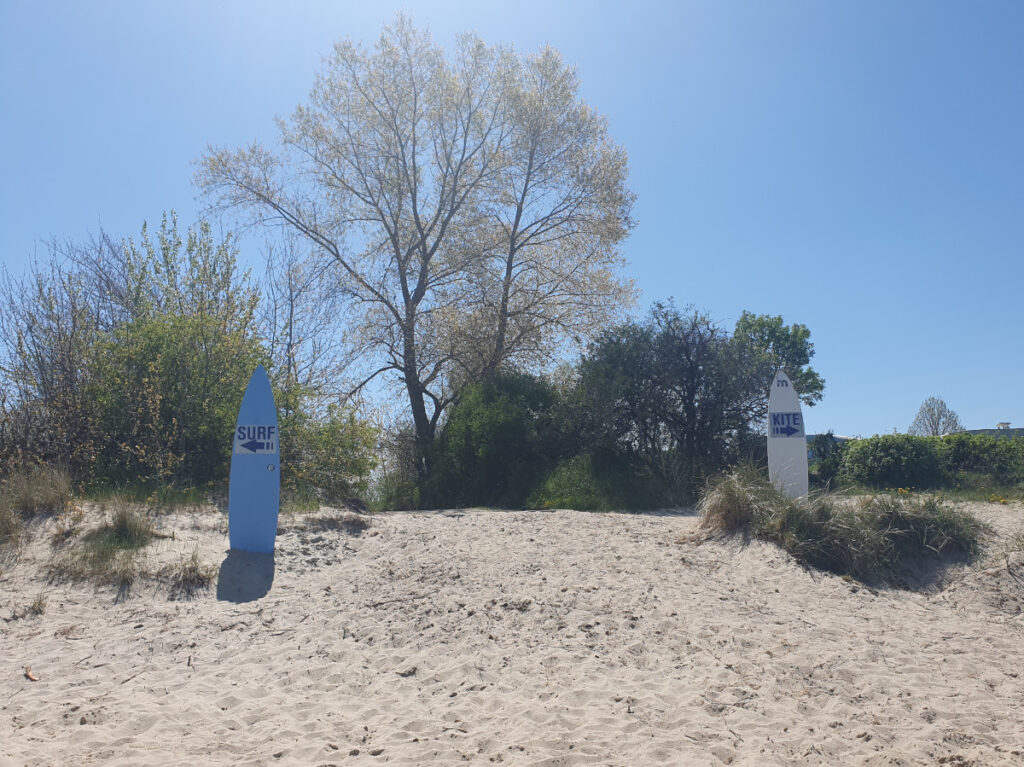 Das Wasser vom Bodden hat meist etwa zwei Grad höhere Temperatur. Die beiden Surfspots in unmittelbarer Nähe sind nicht überlaufen. In der Nebensaison bist Du fast alleine auf dem Wasser.